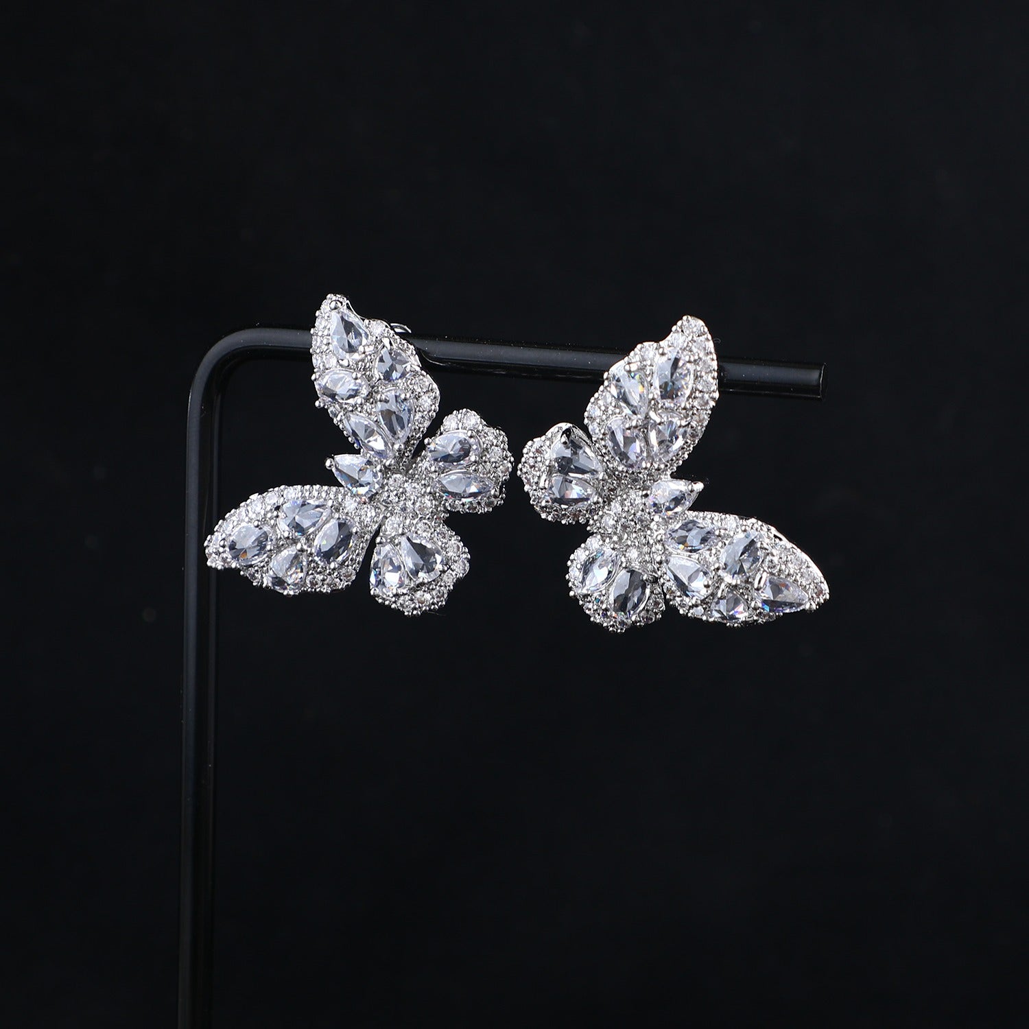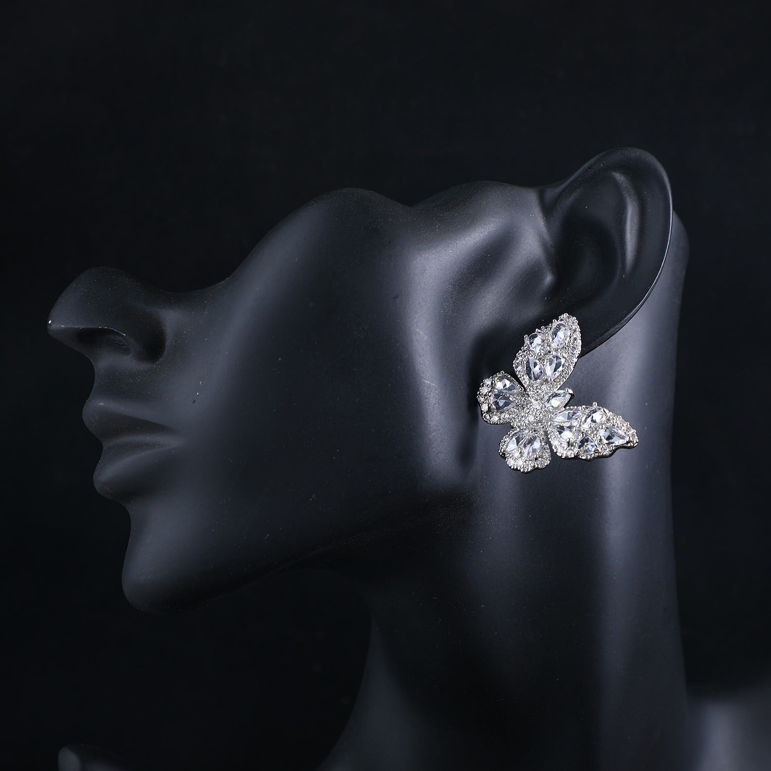 Delicate and enchanting, these earrings feature butterfly‑shaped motifs studded with shimmering crystals, all set in a warm gold& silver‑tone framework. The light reflects beautifully off each facet, giving a luxurious sparkle that elevates any look. Lightweight yet eye‑catching, perfect for weddings, evenings out, or adding a touch of magic to everyday style.