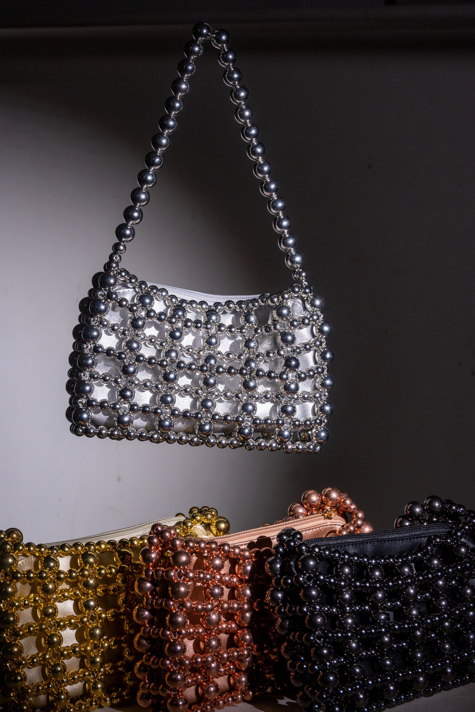 1.Intricately hand-beaded exterior with high-shine finish