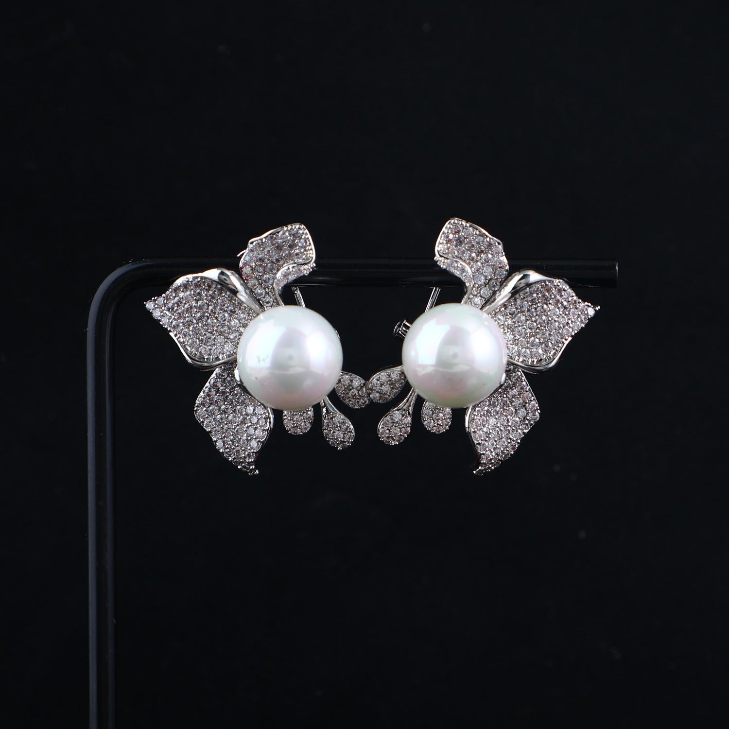 Exuding floral elegance, these earrings feature luminous pearls nestled at the heart of sparkling crystal-studded orchid petals. Crafted in 925 sterling silver, they embody a perfect balance of natural beauty and refined luxury — ideal for weddings, soirées, and timeless evening sophistication.