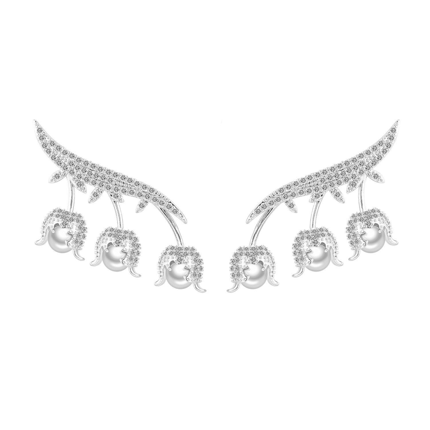 Inspired by delicate blossoms, these earrings feature cascading pearl drops framed with crystal-studded petals, flowing gracefully from a shimmering vine motif. Crafted in 925 sterling silver, they blend natural elegance with timeless luxury — perfect for weddings, soirées, and sophisticated evening wear.
