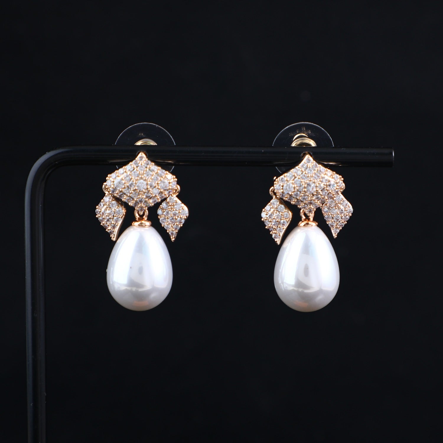 Elegant and timeless, these earrings feature luminous teardrop pearls suspended from intricately set crystal-studded motifs. Crafted in 925 sterling silver with a refined finish, they are available in both classic white pearl and blush pink pearl variants — perfect for weddings, festive occasions, or adding a touch of sophistication to evening wear.